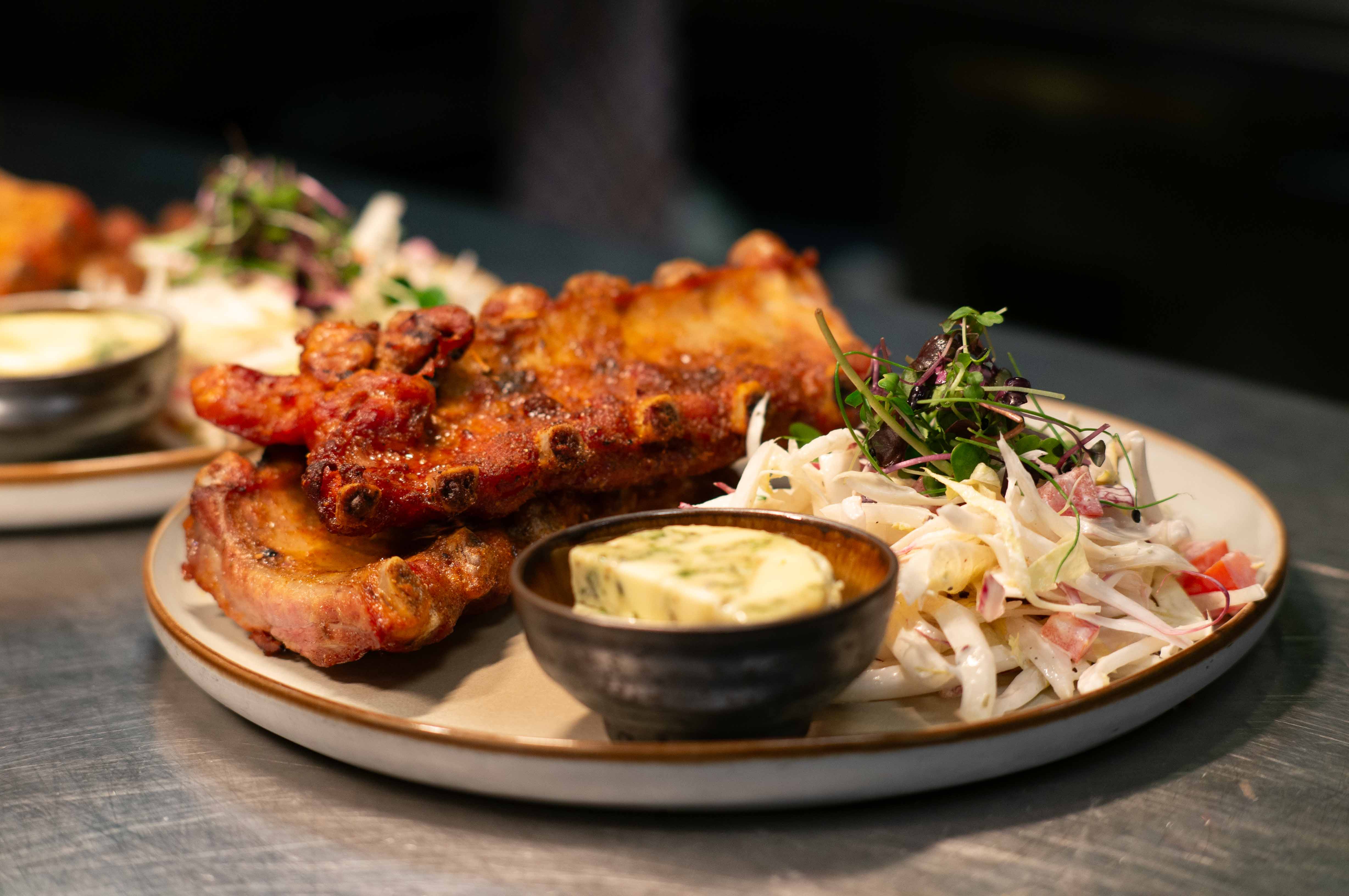 gekruid / varkensribbetjes met kruidenboter of provençaalse saus en frietjes